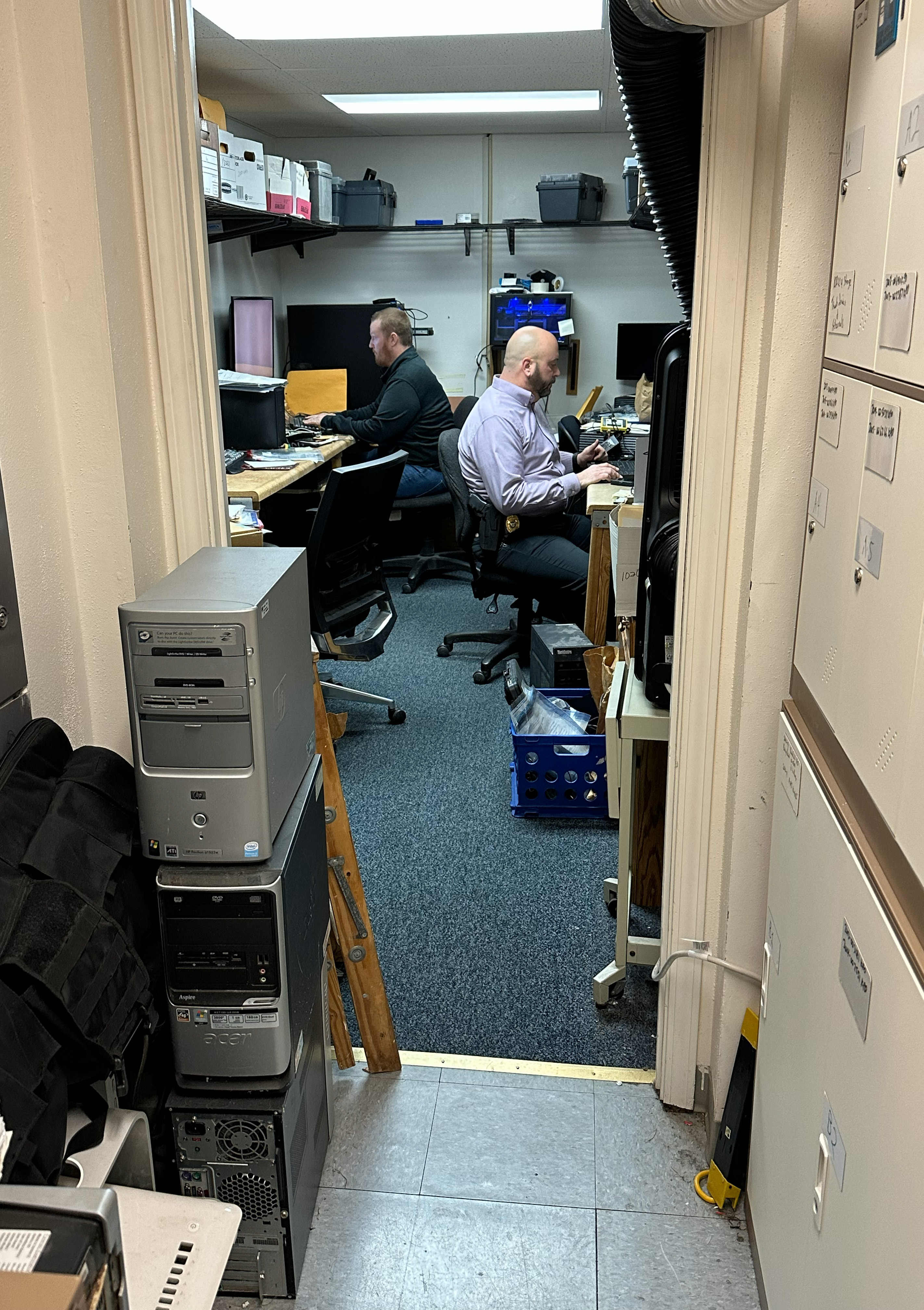 This converted storage closet is the space the unit has to operate. It has to keep computers, phones, tablets and other electronics for long periods of time because investigations and court proceedings can take a long time. That reduces the amount of space in the lab.